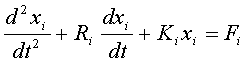 gdzie wartość Tp dobiera się z reguły w sposób eksperymentalny, a oznacza ona czas opadania poziomu ciśnienia od wartości maksymalnej Pstart do wartości w stanie ustalonym Pfinal [16]. Ostatecznie, drgania pojedynczego i-tego oscylatora z rys.3.5, opisać można równaniem różniczkowym drugiego rzędu: