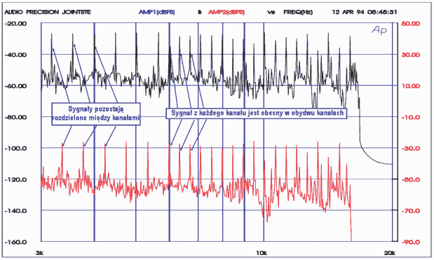 Widmo sygnału wyjściowego kodeka pracującego w trybie JOINT STEREO