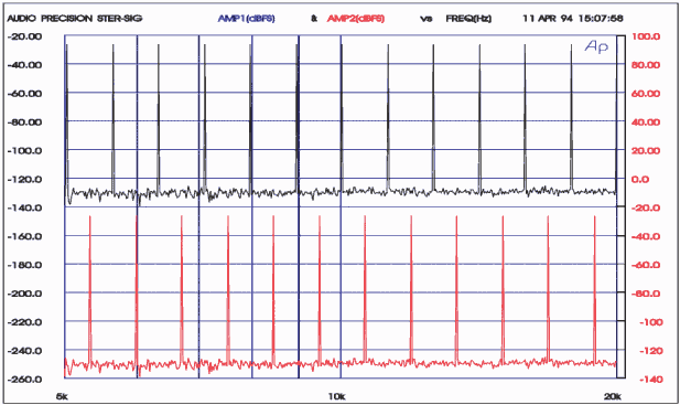 Widmo sygnału wyjściowego kodeka pracującego w trybie DUAL MONO