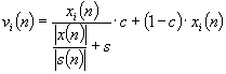 where vi(n) is corrected i-th signal segment, xi(n) - original i-th signal segment, s(n) - average speech pattern spectrum, x(n) - average signal spectrum. This algorithm is similar to the blind deconvolution method, but additional parameters may be set by the user. Correction factor (0%-100%) is the degree to which the signal is modified by the algorithm. Smoothing factor (0.001-1) is related to the modification of the correction function maxima (e.g. sharp peaks). The algorithm may be described using the equation: