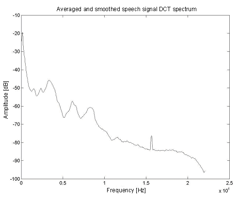 Practically, averaged spectrum is obtained by calculating the spectra of the segmented signal (segments may overlap and they may be time-weighted using windows). The averaged signal spectrum is the average spectral energy from all segments. Spectrum in each segment is calculated using the discrete cosine transform. Averaged spectrum is additionally smoothed using the moving average filter in cepstrum domain in order to avoid extreme variations of spectrum magnitude.