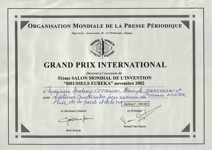 Brussels Eureka) and the Grand Prix International of World Press Association