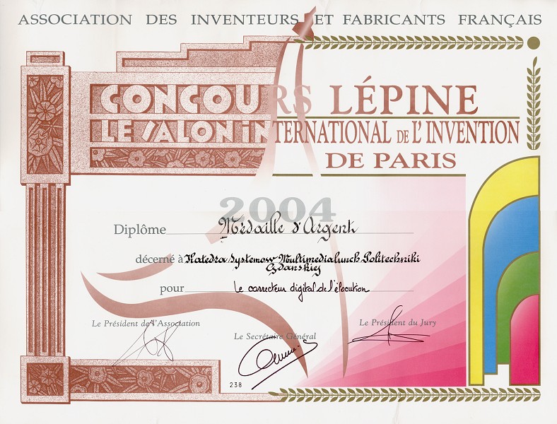 Multimedia Systems Department received Ministry of Science Cup for international inventions and Diploma from Ministry of Science for Digital Speech Aid DSA-3.