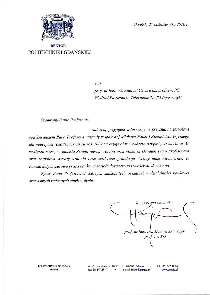 of Electronics, Telecommunication and Infomatics) chaired by prof. Andrzej