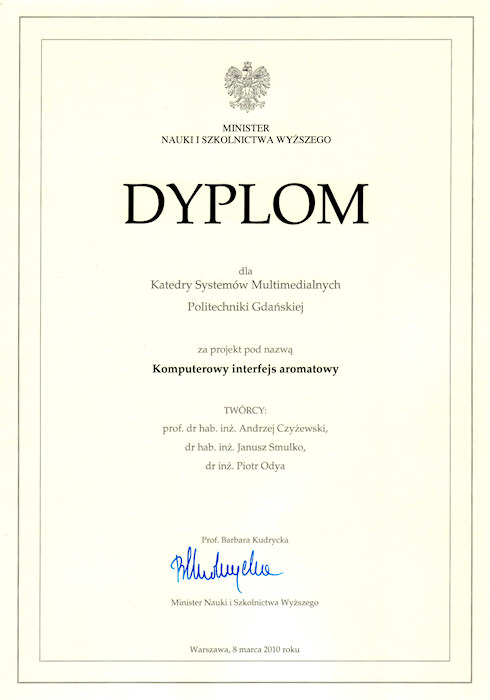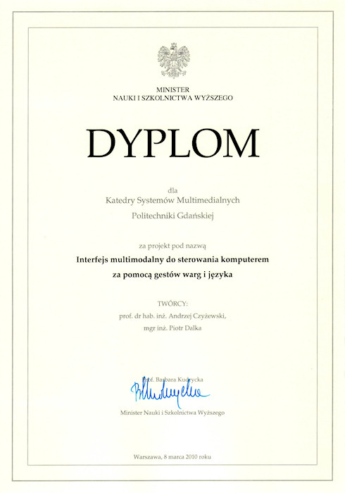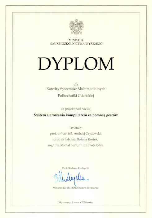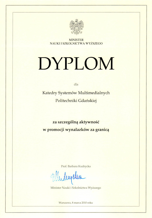 Diploma of Polish Minister of Science for Centre of Medical Technologies