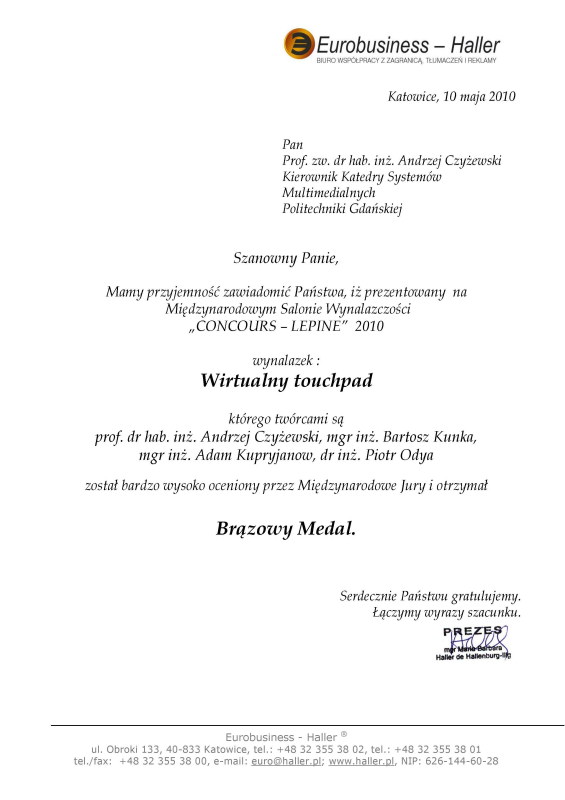 The Department was represented by prof. Andrzej Czyżewski, Prof. Bożena Kostek