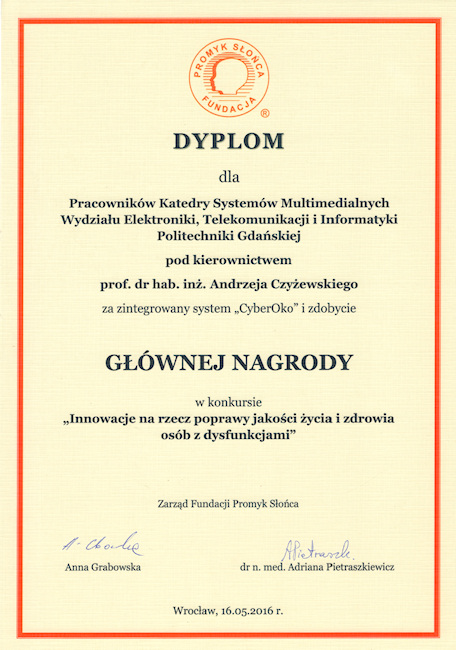 Kapituła konkursu "Innowacje na rzecz poprawy jakości życia i zdrowia osób z dysfunkcjami" uznała system "CyberOko" za