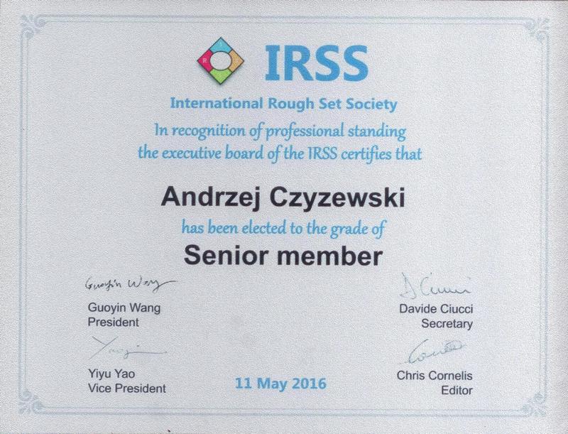 Prof. A. Czyżewski członkiem Senior Member International Rough Set Society