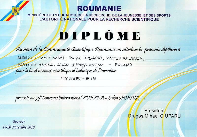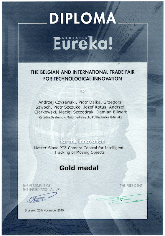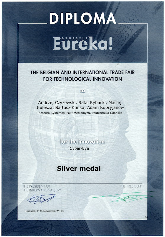 System sterowania kamerami ruchomymi w inteligentnym systemie śledzenia obiektów ruchomych oraz system i aplikacje związane ze śledzeniem położenia wzroku na monitorze komputerowym "Cyber-oko", opracowane w Katedrze Systemów Multimedialnych, zostały docenione przez jury podczas 59-tych Międzynarodowych Targów Wynalazczości, Badań Naukowych i Nowych Technik BRUSSELS INNOVA 2010. Pierwsze z rozwiązań zostało nagrodzone złotym medalem, drugie - srebrnym. Ponadto Cyber-Oko zostało wyróżnione medalem i dyplomem rumuńskiego Ministra Edukacji, Badań Naukowych, Młodzieży i Sportu.