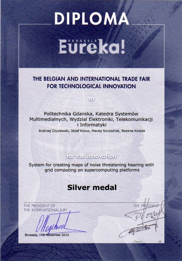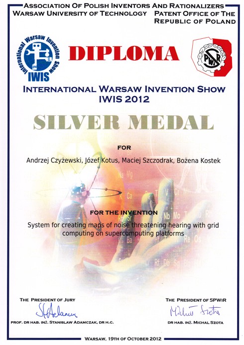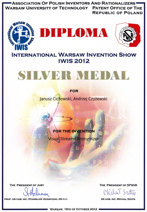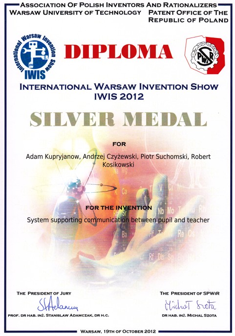 W dniach 16-19 października 2012 w Warszawie odbyła się VI Międzynarodowa Warszawska Wystawa Wynalazków IWIS 2012. Tegoroczna wystawa IWIS uzyskała Honorowy Patronat Prezydenta Rzeczypospolitej Polskiej Bronisława Komorowskiego. Wystawa odbyła sie w Politechnice Warszawskiej i zgromadziła około 600 wystawców z wielu krajów. Na wystawę zgłoszone zostały trzy rozwiązania opracowane w Katedrze Systemów Multimedialnych: System do tworzenia map zagrożeń hałasem z zastosowaniem obliczeń gridowych na platformach superkomputerowych, System wspomagania komunikacji nauczyciel uczeń, Anonimizator strumieni wizyjnych. Wszystkie zgłoszone rozwiązania zostały nagrodzone srebrnymi medalami. System wspomagania komunikacji nauczyciel uczeń został dodatkowo nagrodzony złotym medalem Koreańskiego Stowarzyszenia Wynalazców.