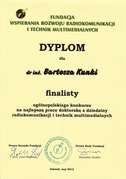 na najlepszą pracę doktorską z dziedziny radiokomunikacji i technik