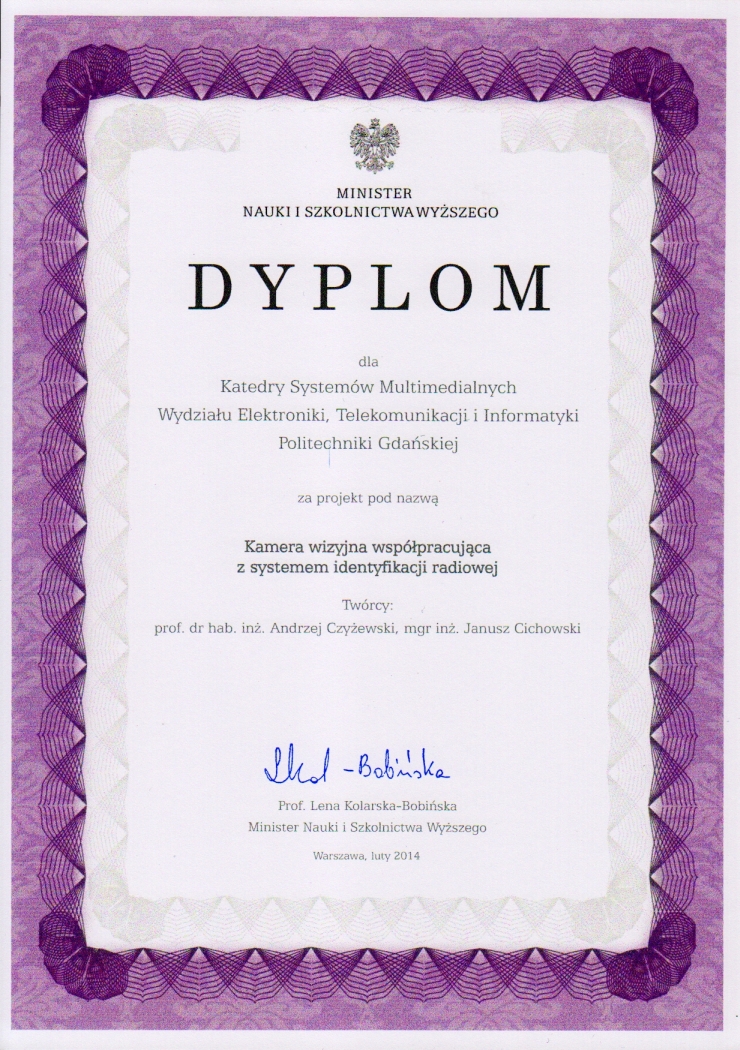 - Inteligentna kamera wizyjna sterowana sygnałami RFID opracowana w ramach projektu COPCAMS, nagrodzony Złotym Medalem podczas 62 Międzynarodowych Targów Wynalazczości, Badań Naukowych i Nowych Technik BRUSSELS INNOVA oraz Srebrnym Medalem podczas Międzynarodowej Wystawy Wynalazków IWIS 2013.