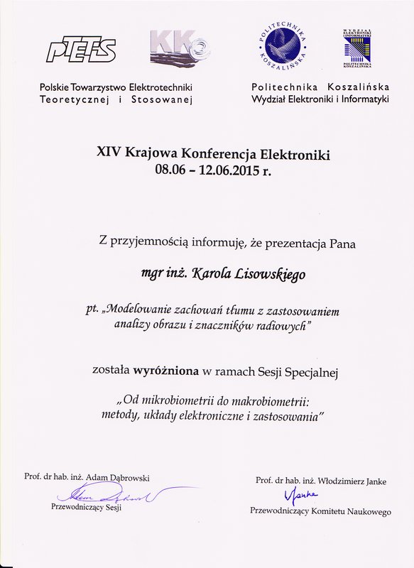 Wyróżnienie na XIV Krajowej Konferencji Elektroniki