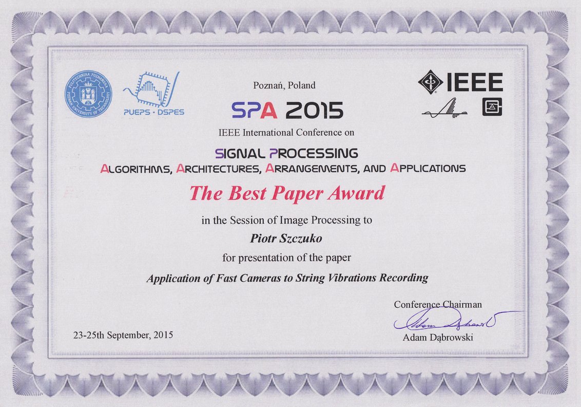 przez dra Piotra Szczuko na konferencji IEEE SPA 2015 - Signal