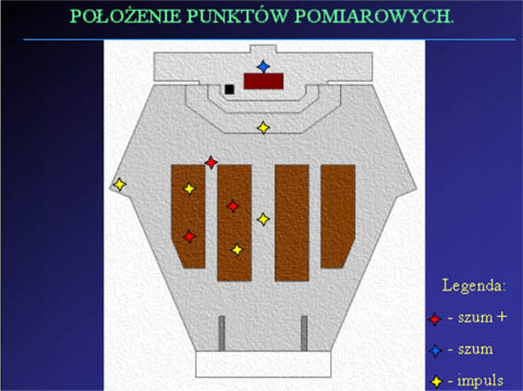 Badanie odpowiedzi impulsowej pomieszczenia polegało na nagraniu odgłosu jaki powstaje przy zamykaniu pustego segregatora. Sygnał ten ma w przybliżeniu postać delty. Dołożono wszelkich starań, aby poszczególne dźwięki miały jednakowy charakter.