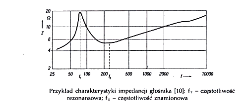 Impedancja znamionowa głośnika jest to najmniejsza wartość modułu impedancji elektrycznej występująca przy częstotliwości leżącej powyżej częstotliwości rezonansowej mechanicznego układu głośnika. Przykładowy przebieg impedancji w funkcji częstotliwości obrazuje poniższy rysunek.