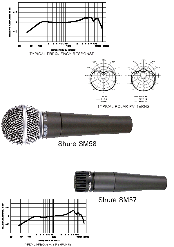 Shure SM-58 jest prawdopodobnie najbardziej znanym mikrofonem, powszechnie uznanym za klasyczny mikrofon do nagrywania wokalu. Jest on używany w różnych produkcjach niezależnie od ich budżetu. Shure SM-57 jest wielofunkcyjnym mikrofonem z nieco szerszą odpowiedzią impulsową. Lepsze ujmowanie niskich i wysokich tonów czyni z SM-57 mikrofon bardziej uniwersalny, nadający się do nagrywania nie tylko wokalu lecz również wielu instrumentów.