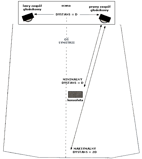 Konsoleta powinna być ustawiona w pobliżu osi akustycznej (łączącej punkty równoodległe od obu głośników) jednak nie dokładnie na osi. Jest to spowodowane tym, że w centrum mogą nie być słyszalne pewne niekorzystne zjawiska pogarszające jakość brzmienia w całym pomieszczeniu (np. filtracja grzebieniowa), które powinien słyszeć, by móc z nimi walczyć, realizator dźwięku.