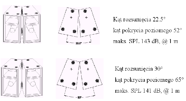 - w płaszczyźnie pionowej i poziomej\SPL od 10 do 16 dB większy niż dla 1 kolumny