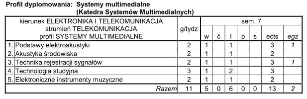 i trwają trzy semestry. Nasza Katedra prowadzi specjalność o nazwie Inżynieria dźwięku i obrazu.